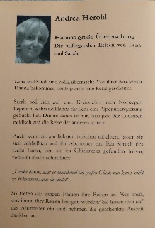 Sie hatte ihr neues Buch: „Hannas große Überraschung. Die aufregenden Reisen von Lena und Sarah" im Gepäck. Das ist ihr vierter Roman, den sie uns vorstellen wollte. Die